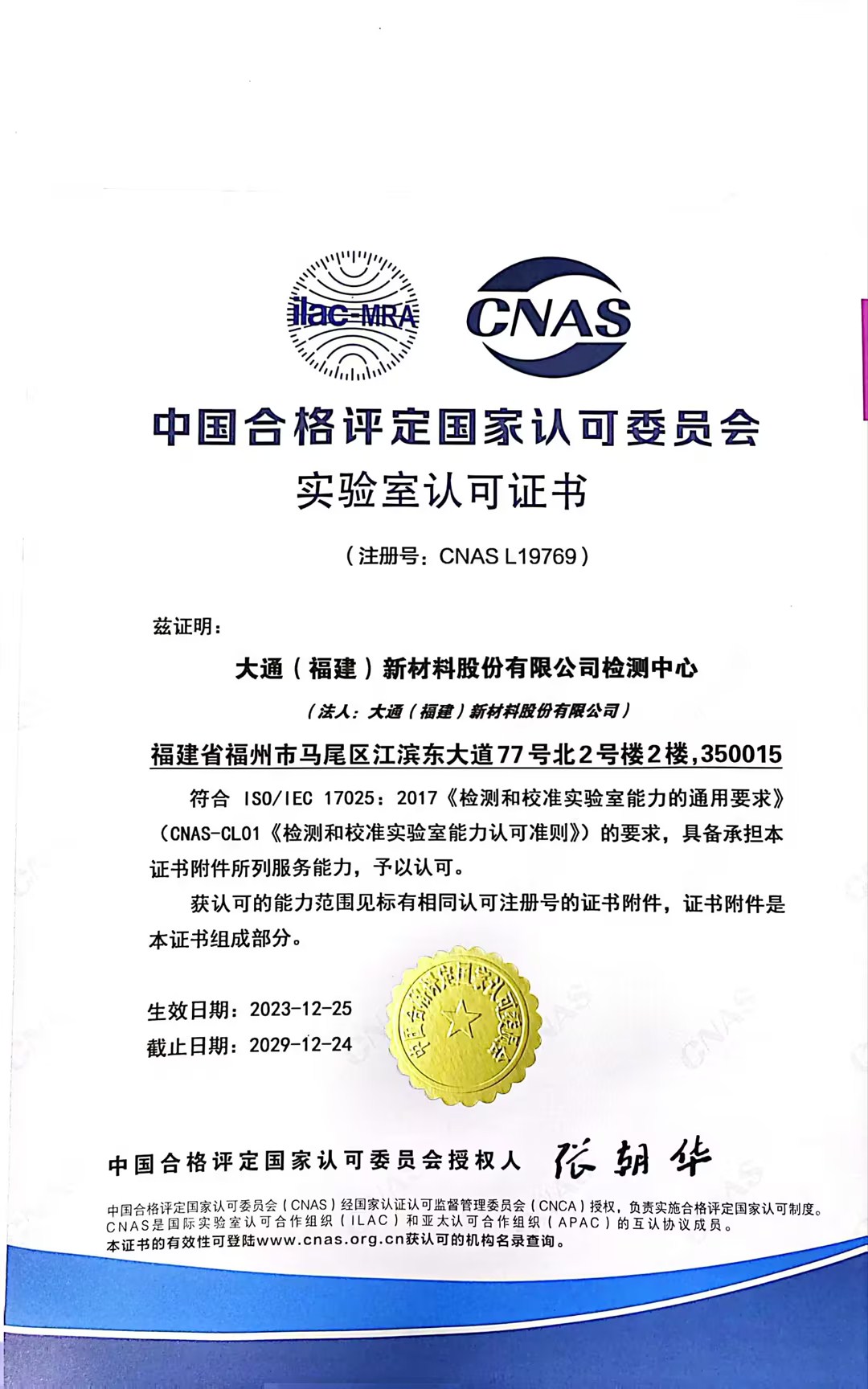CNAS認可證書