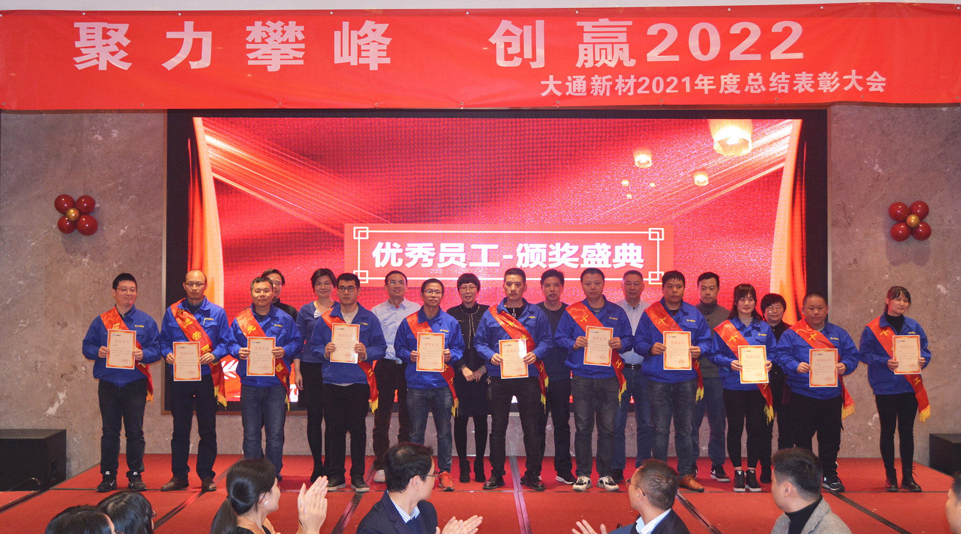 大通新材不斷前行的道路上,離不開每一位大通新材人的努力與奮斗。會(huì)上,隆重舉行了2021年度明星員工、金牌銷售員等優(yōu)秀員工的表彰和頒獎(jiǎng),鼓勵(lì)他們一年來為公司發(fā)展做出的貢獻(xiàn)!