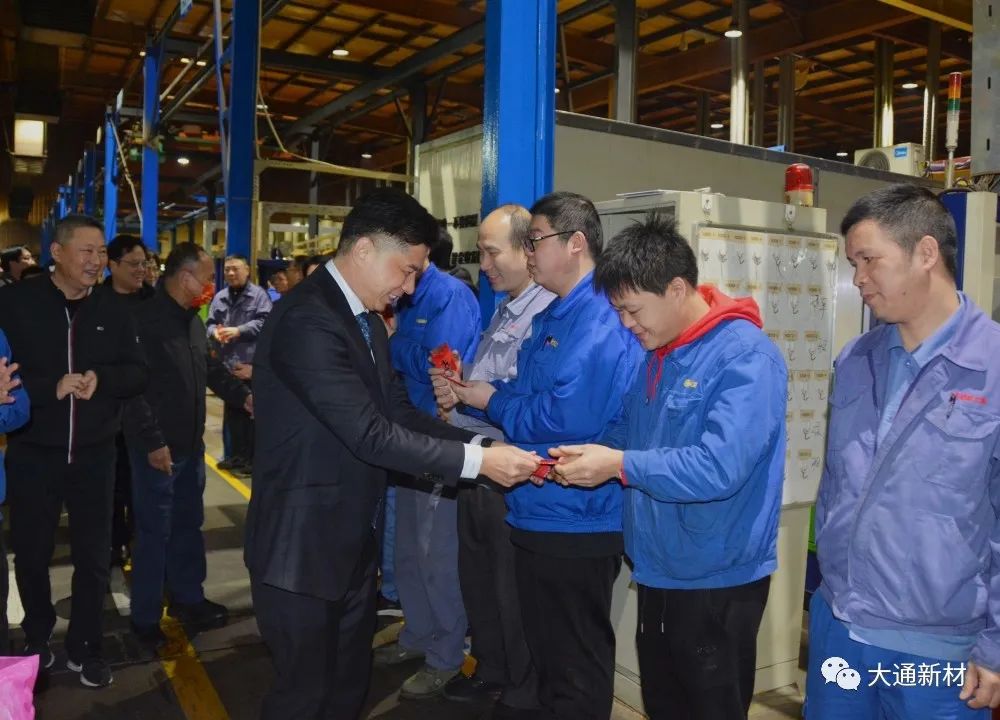 廠區(qū)內(nèi)紅旗飄飄、燈籠高掛,處處洋溢著濃濃的節(jié)日氛圍;車間內(nèi)機(jī)器轟鳴聲不絕于耳,生產(chǎn)設(shè)備正繁忙而有序地作業(yè)。2月1日,農(nóng)歷大年初一,年味兒正濃。一大早,總經(jīng)理陳曦率領(lǐng)中高層管理人員,給春節(jié)期間依然堅(jiān)守在一線的員工拜年、加油鼓勁,并送上誠(chéng)摯祝福和衷心感謝。初一團(tuán)拜是大通新材多年來(lái)堅(jiān)持的傳統(tǒng)賀歲方式,極大地鼓舞了員工工作熱情,提高了員工生產(chǎn)積極性,增強(qiáng)了企業(yè)凝聚力。